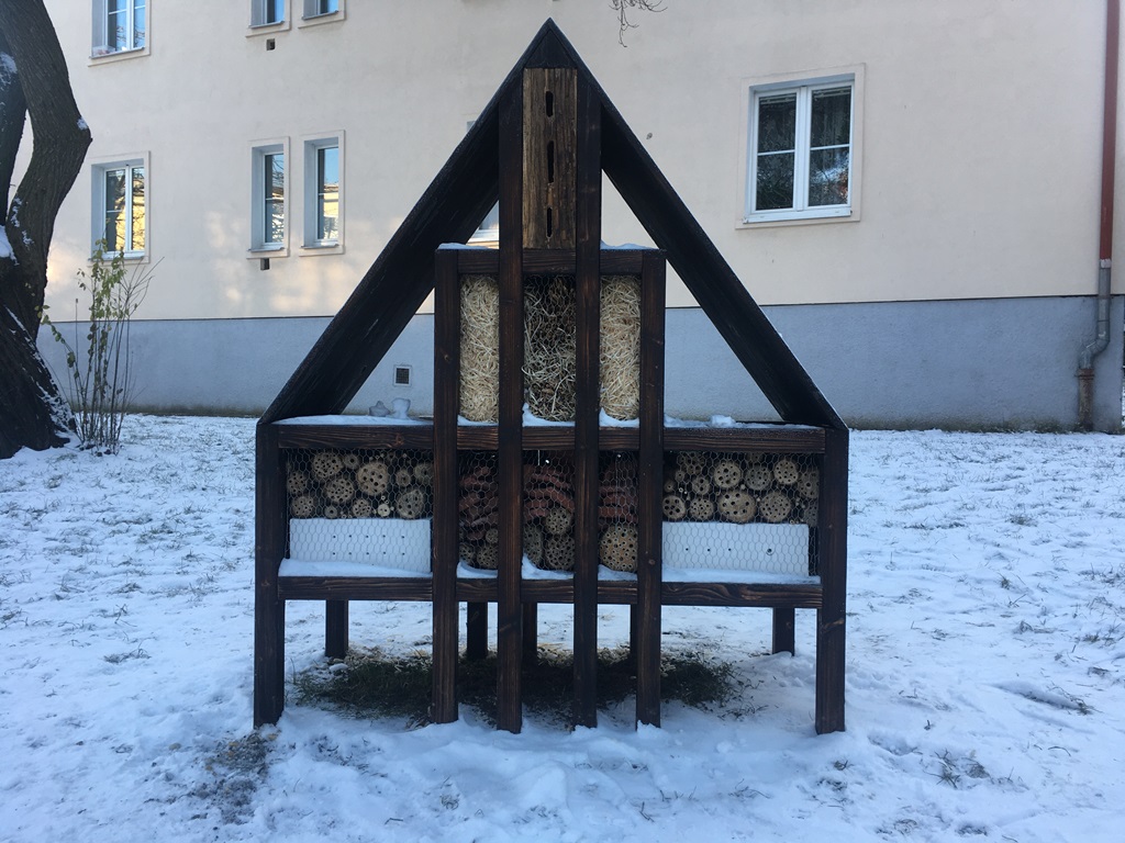 Hmyzí hotel je uměle vytvořená skrýš pro různé druhy hmyzu, které jsou ve městech vystaveny zhoršeným podmnínkám, přesto však nesmírně užitečné. Kromě možnosti úkrytu mu může posloužit i ke kladení vajíček a následnému vývoji larev. Naše instalace hmyzích hotelů však vedle svojí ekologické role plní i úlohu estetického objektu ve veřejném prostoru. Jejich design, inspirován skandinávskou architekturou, doplňuje městskou zeleň, ale zbytečně neruší a nebere mnoho prostoru určeného pro využití daného parku. Hmyzí hotely jsou pojaté jako trvale udržitelná stavba (počítáme jako autoři projektu i s jejich sezónní údržbou), jako funkční socha dávající šanci ohroženému životu a osvěžující prvek městské zástavby.