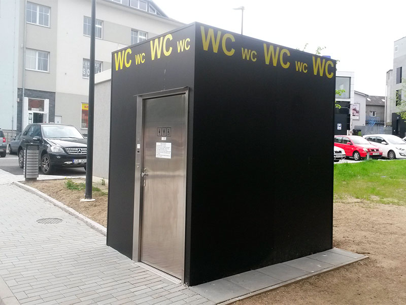 Navrhuji instalovat moderní veřejné WC. Uvádím příklad od společnost SIAINVEST s.r.o., která vyvíjí, vyrábí a dodává řady celohliníkových prvků městského a venkovního mobiliáře. Každá výrobní řada městského mobiliáře má své charakteristické jednotící prvky, neomezenou barevnost, vysokou odolnost proti opotřebení a tím i dlouhou životnost. Vnitřní prostor je v celém obvodu z nerezové oceli, stejně jako všechny zařizovací předměty. Zařizovací předměty jsou v ANTIVANDALOVÉM provedení, jsou ovládány senzoricky bez mechanických prvků. Veřejné toalety X-WC01 jsou kompaktní WC modul, který je konstrukčně vyroben jako samonosný opláštěný sendvič opatřený tepelnou izolací a opláštěný hliníkovým plechem. Vstupní dveře jsou opatřeny mincovním automatem. Prostor WC je temperován a osvětlen. Vnitřní prostor je v celém prostoru z nerezové oceli, stejně jako všechny zařizovací předměty. Zařizovací předměty jsou v antivandalovém provedení a ovládány senzoricky bez mechanických prvků.
