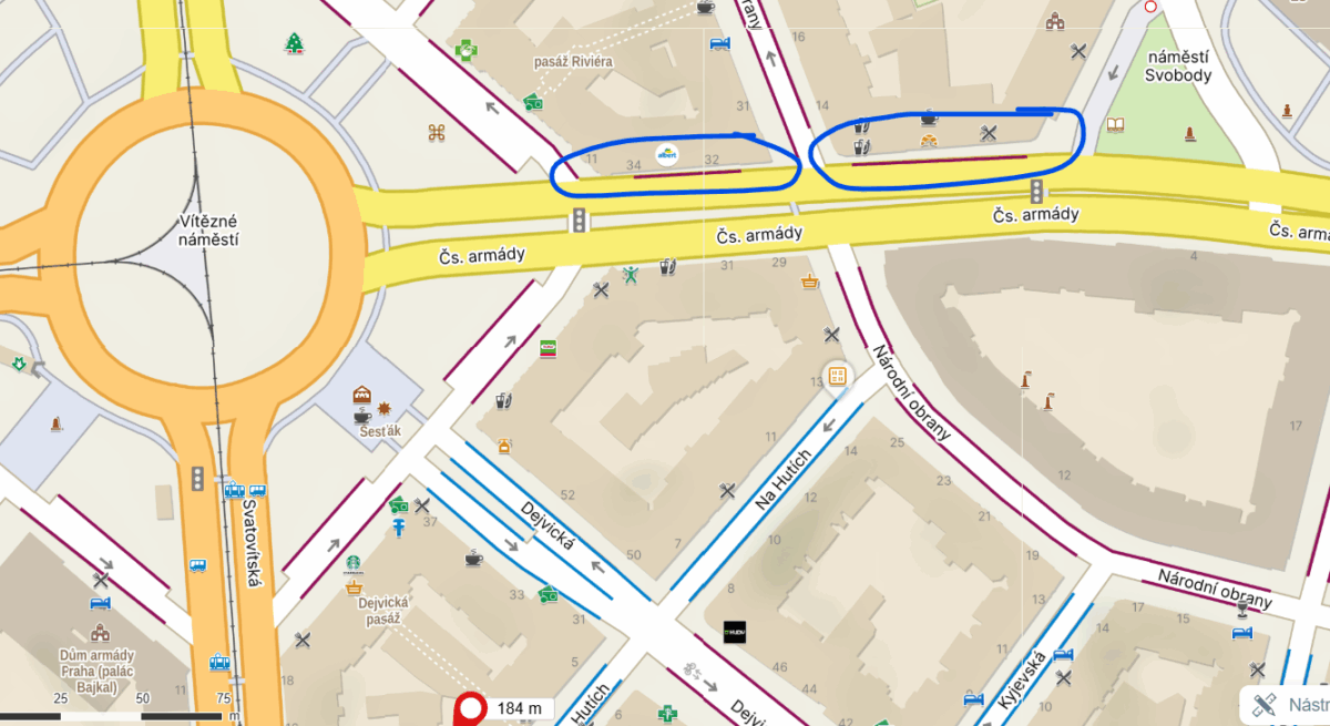 Ulice Čs. armády mezi náměstím Svobody a Vítězným náměstím, 50.1008389, 14.3986003