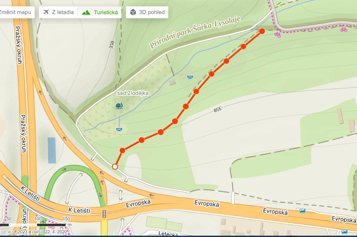 Obyvatelé Liboce a Ruzyně vč. Dědiny často volí směr procházky či cyklojízdy od tunýlků pod MÚK Evropská x Slánská (PO) k rozcestí asfaltové silničky (cyklotrasa A33) s cestou podél vodoteče od MÚK. Navrhujeme tuto možnost obohatit z jiného směru tak, že vznikne jak varianta, tak možnost procházkového okruhu. Ta sleduje jižní hranu sadu Zlodějka a v podstatě po vrstevnici se napojuje na historickou a v mapě dodnes označenou cestu.