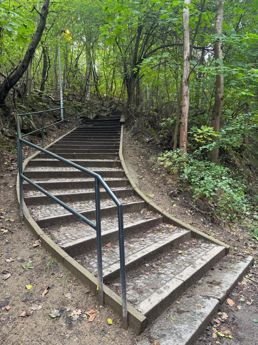 Se schody do Divoké Šárky to není jednoduché. Byly postaveny skoro před sto lety a chůze po nich připomíná bojovou hru ze středověku. K tomu mají velmi komplikované vlastnické vztahy, tedy konkrétně pozemek, na kterém se nacházejí. A ten bohužel Praze 6 nepatří. Šestka se tak alespoň rozhodla řešit na své náklady havarijní stav spodní části schodiště. Rozpadlé části se nahradily novými kamennými stupni a po celé délce pak jako opora nově slouží 75 metrů zábradlí.