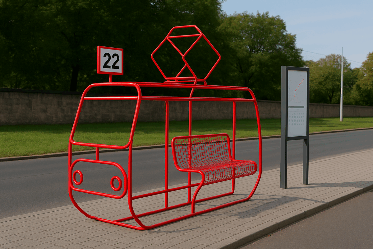 Finální podoba může být vybrána v soutěži mladých architektů a designérů. Koncepční návrh uvažuje o rozměrech cca 4,5 × 2,2 × 0,8 metru. Skulptura bude vytvořena z ocelových trubek lakovaných do tradiční tramvajové červené. Funkční část umožní pohodlné sezení pro dvě až tři osoby a součástí bude i informační tabule s připomenutím historie linky 22 a některými jejími zajímavostmi.